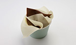 ②をカップに沿わせて入れ、はみ出たクレープ生地をカップの外側にたらす。