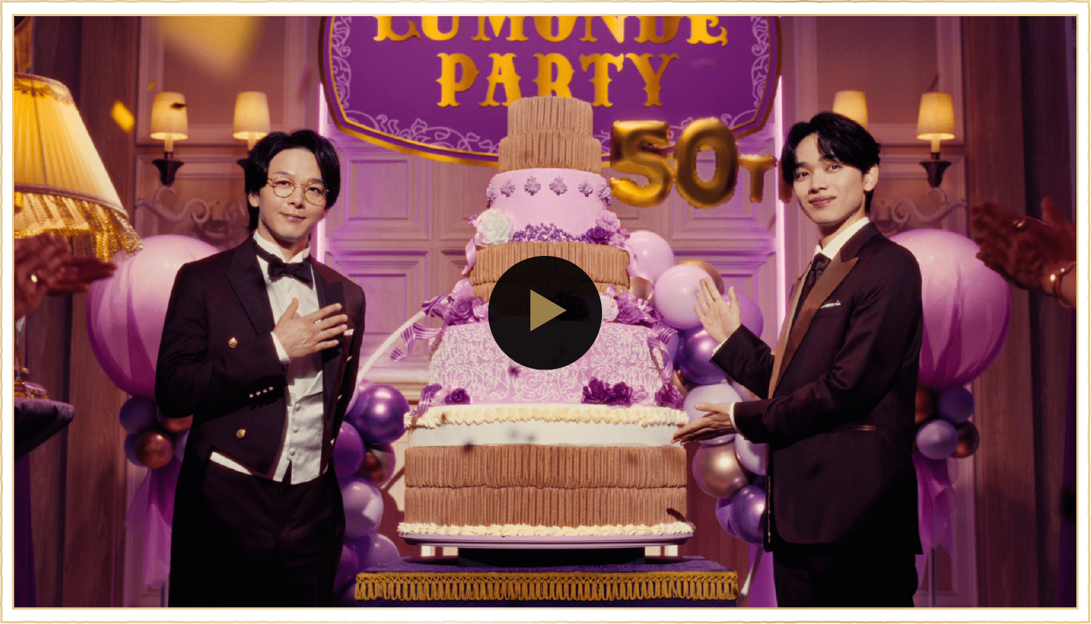2024年に、発売50周年を迎えたルマンド。「カフェ・ド・ルマンド」のマスターたちは、華やかなルマンドタワーをつくってお祝いします。ぜひ、ルマンド片手に、パーティー気分を味わってみてください。