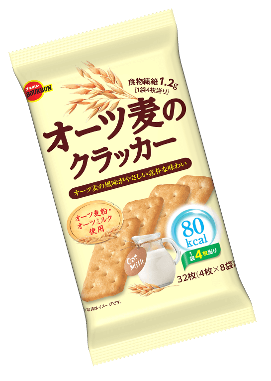 オーツ麦粉とオーツミルクを練り込んで焼きあげた、やさしい素朴な味わいの クラッカーです。栄養成分表はこちら